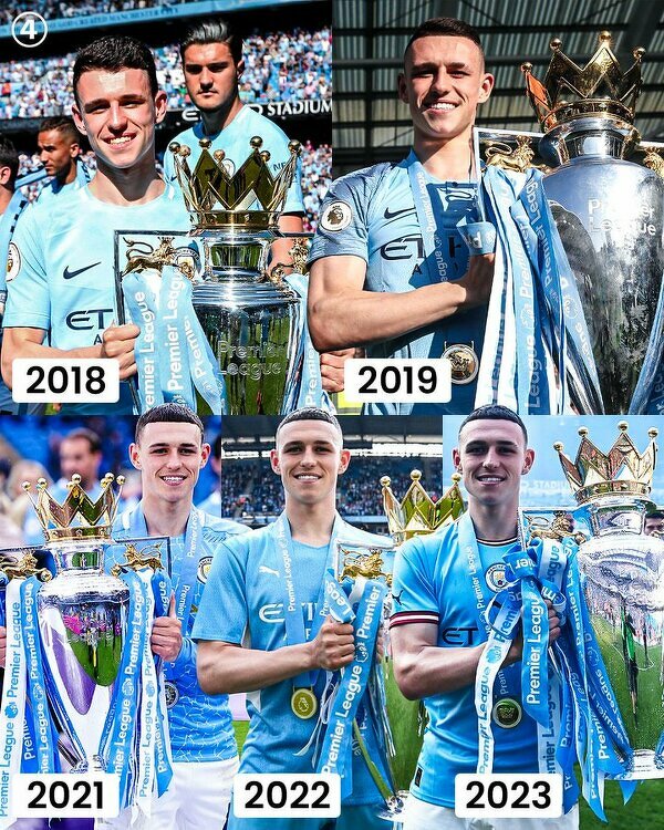 22-letni Foden wygrał ligę 5 razy. Żaden piłkarz w historii Premier League nie zdobył tyle tytułów w tak młodym wieku
