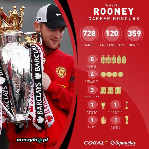34. urodzin obchodzi Wayne Rooney najlepszy strzelec Manchesteru United z 253 bramkami we wszystkich rozgrywkach