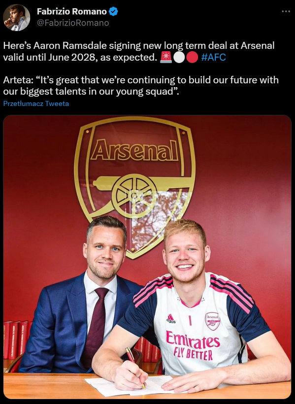 Aaron Ramsdale przedłużył kontrakt z Arsenalem do 2028 roku