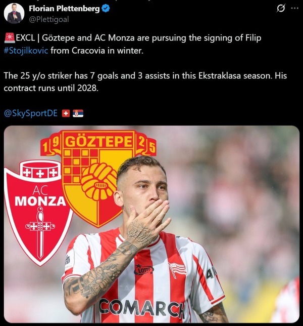 AC Monza i Göztepe zainteresowane pozyskaniem Filipa Stojilkovica z Cracovii