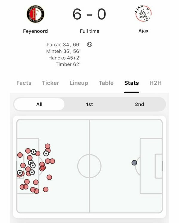 Ajax w meczu z Feyenoordem oddał tylko jeden celny strzał