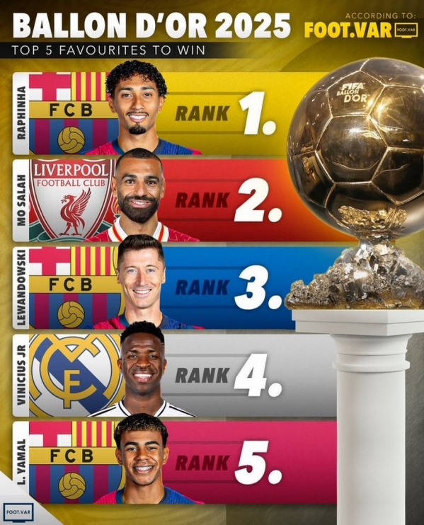 Aktualna klasyfikacja Złotej Piłki według Foot.VAR