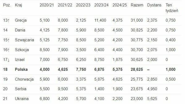 Aktualne miejsce Polski w rankingu UEFA