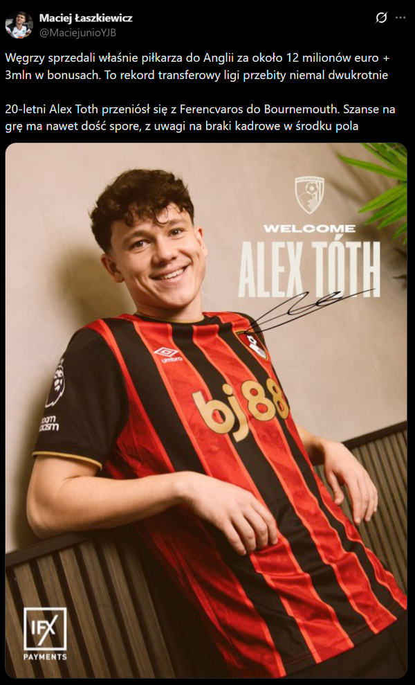 Alex Toth ustanowił rekord sprzedażowy ligi węgierskiej