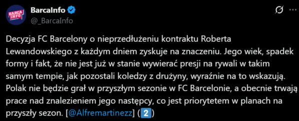 Alfredo Martínez: Barcelona nie przedłuży kontraktu z Lewandowskim