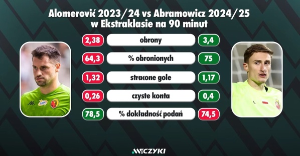 Alomerović 2023/24 vs Abramowicz 2024/25 w Ekstraklasie
