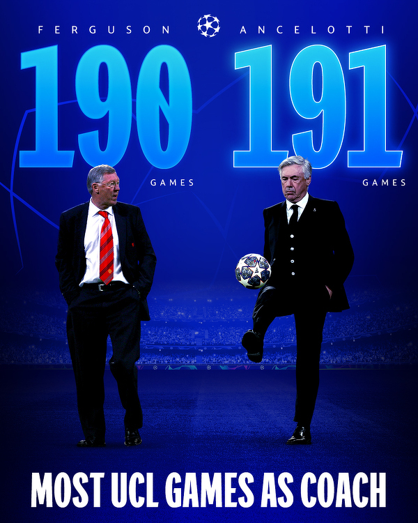 Ancelotti pobił rekord Fergusona. Po raz 191. poprowadził swoją drużynę w starciu Champions League