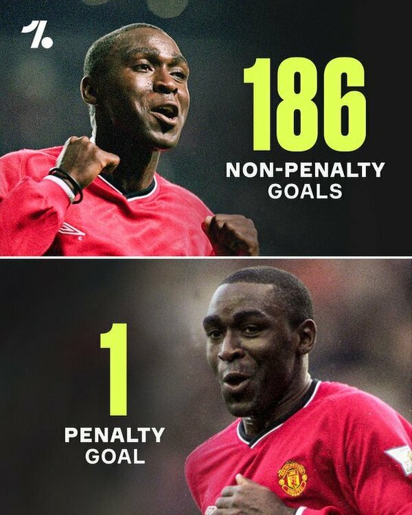 Andy Cole strzelił w Premier League 187 bramek. Tylko jedną z rzutu karnego
