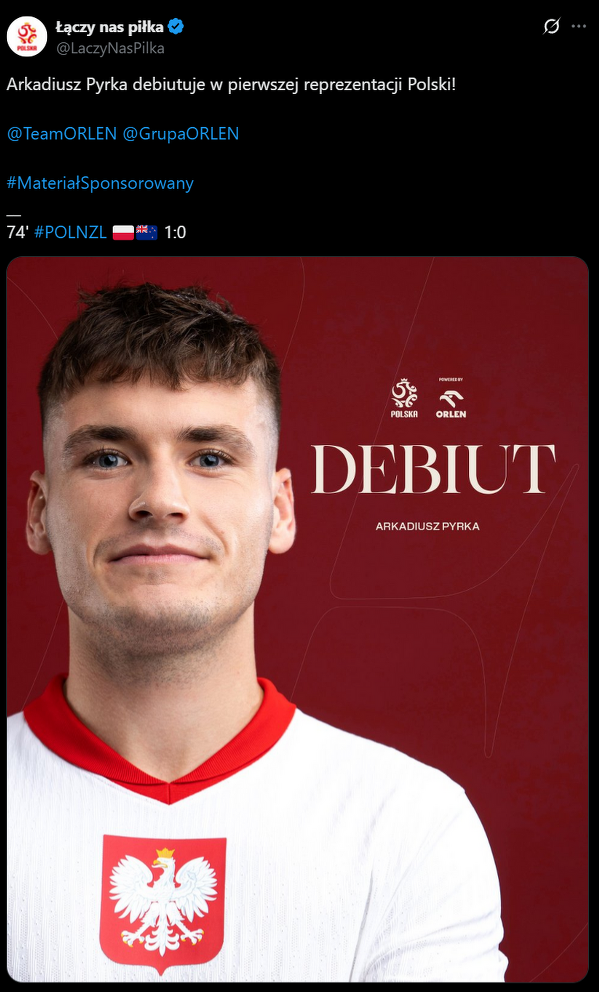 Arkadiusz Pyrka zadebiutował w pierwszej reprezentacji Polski