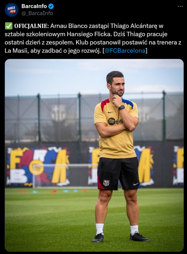 Arnau Blanco zastąpi Thiago Alcántarę w sztabie szkoleniowym Hansiego Flicka