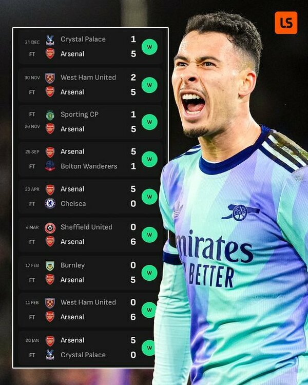 Arsenal aż 9 razy w tym roku odnotował w tym roku mecz, w którym strzelił co najmniej 5 goli