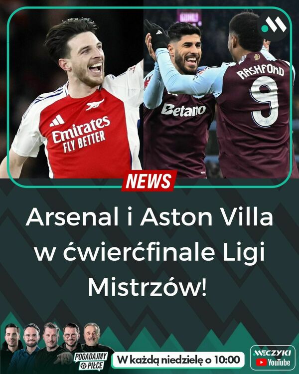Arsenal zremisował 2:2 z PSV (9:3 w dwumeczu), a Aston Villa wygrała 3:0 z Club Brugge (6:1 w dwumeczu)!