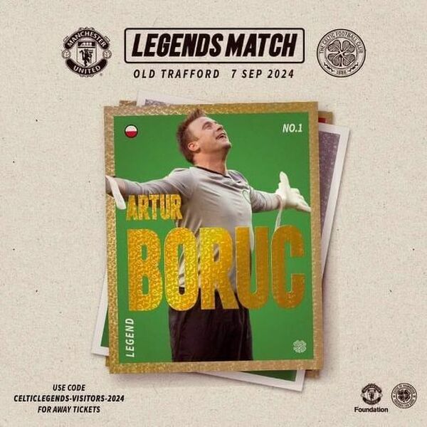 Artur Boruc wystąpi 7 września w meczu legend pomiędzy Manchesterem United a Celtikiem Glasgow