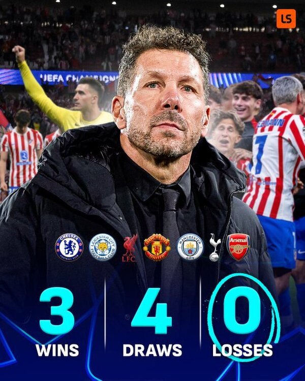 Atletico wciąż nie przegrało meczu w fazie pucharowej LM z angielską drrużyną na jej stadionie