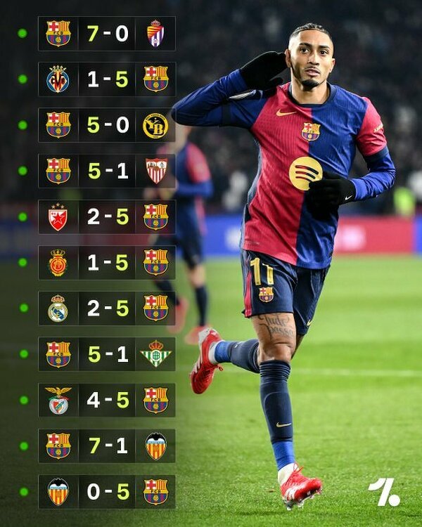 Barcelona w tym sezonie wygrała już 11 meczów, w których strzeliła 5 lub więcej bramek