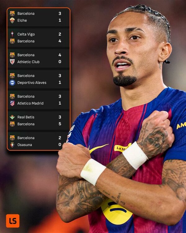 Barcelona wygrała ostatnie siedem ligowych meczów różnicą co najmmniej dwóch bramek
