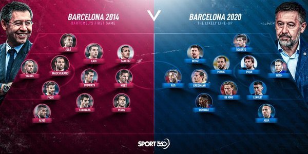 Barcelony, gdy Bartomeu objął prezydenturę w 2014 roku, kontra ta, którą potencjalnie zostawia dziś w tyle