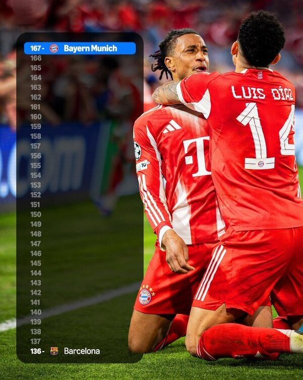 Bayern w tym sezonie strzelił już 31 bramek więcej niż jakakolwiek inna drużyna z lig TOP 5 (we wszystkich rozgrywkach)