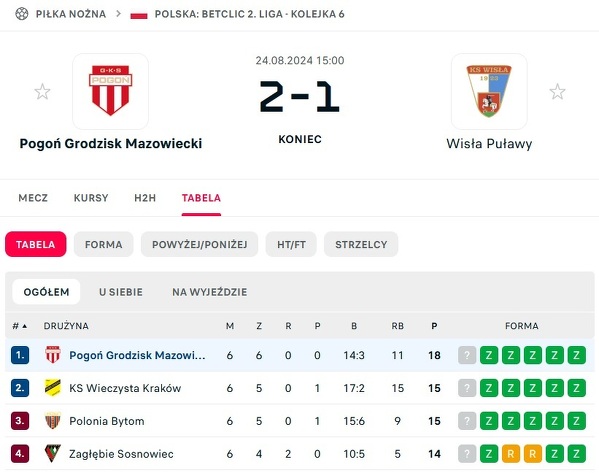 Wyniki na żywo