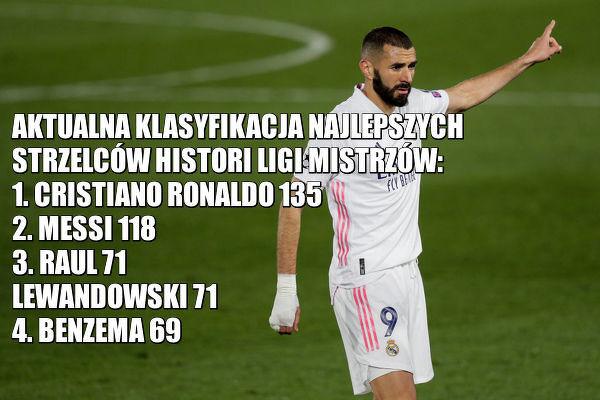 Benzema strzela dwie bramki w pierwszej połowie i goni Lewego