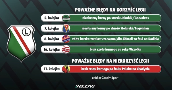 Błędy na niekorzyść i korzyść Legii w tym sezonie