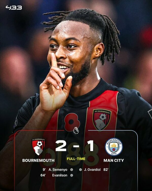 Bournemouth przerywa serię 32 ligowych meczów Man City bez porażki