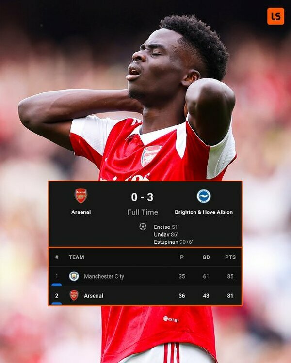 Brighton wygrywa na Emirates Stadium! Arsenal praktycznie stracił szanse na mistrzostwo