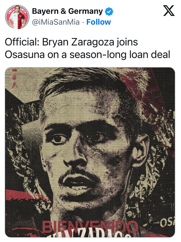 Bryan Zaragoza został wypożyczony z Bayernu do Osasuny