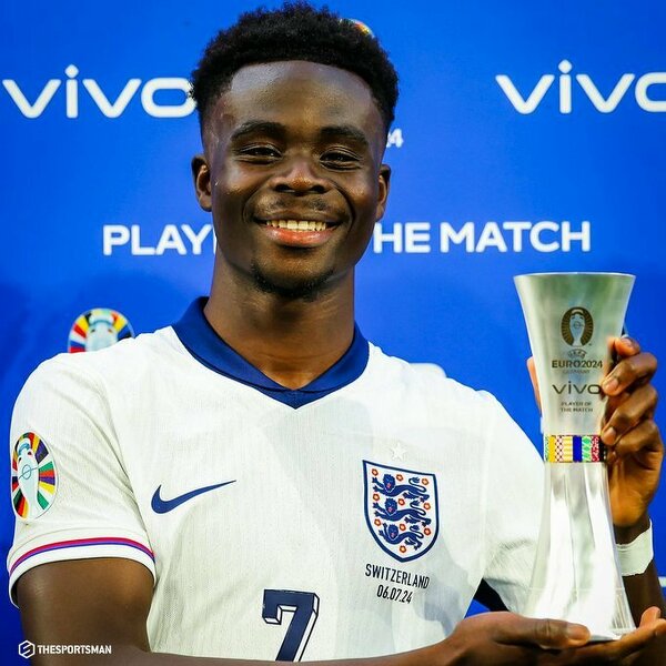 Bukayo Saka wybrany zawodnikiem meczu w spotkaniu Anglii ze Szwajcarią