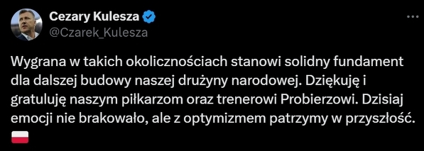 Cezary Kulesza pogratulował reprezentacji Polski zwycięstwa nad ekipą Szkocji