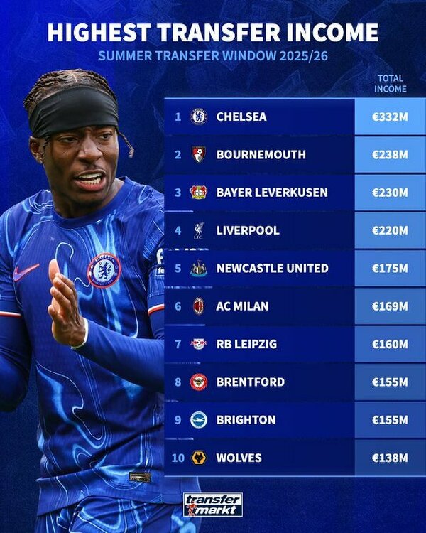 Chelsea z największym zyskiem transferowym w letnim okienku 2025/26