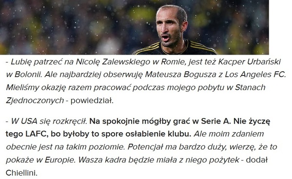 Chiellini chwali Bogusza