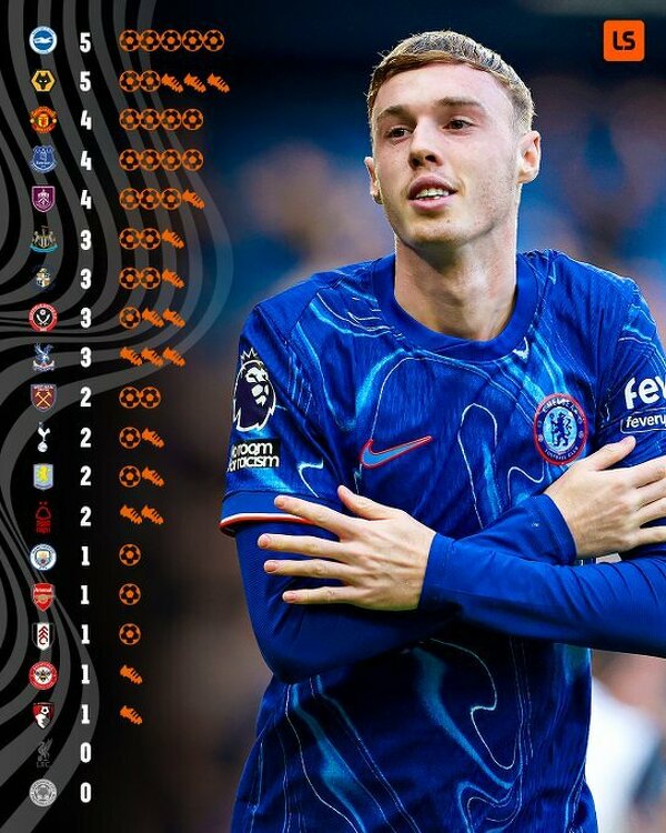 Cole Palmer z golem lub asystą w meczach przeciwko 18 drużynom Premier League