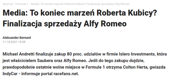 Czarne chmury zawisły nad Kubicą