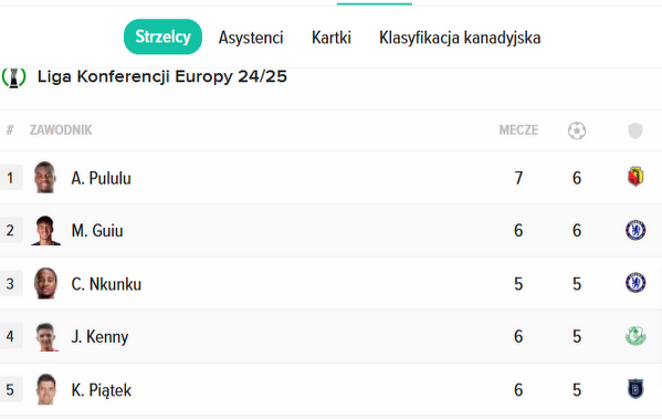 Czołówka klasyfikacji strzelców Ligi Konferencji