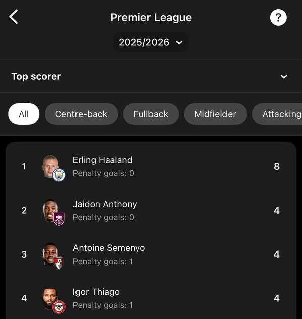 Czołówka najlepszych strzelców w Premier League