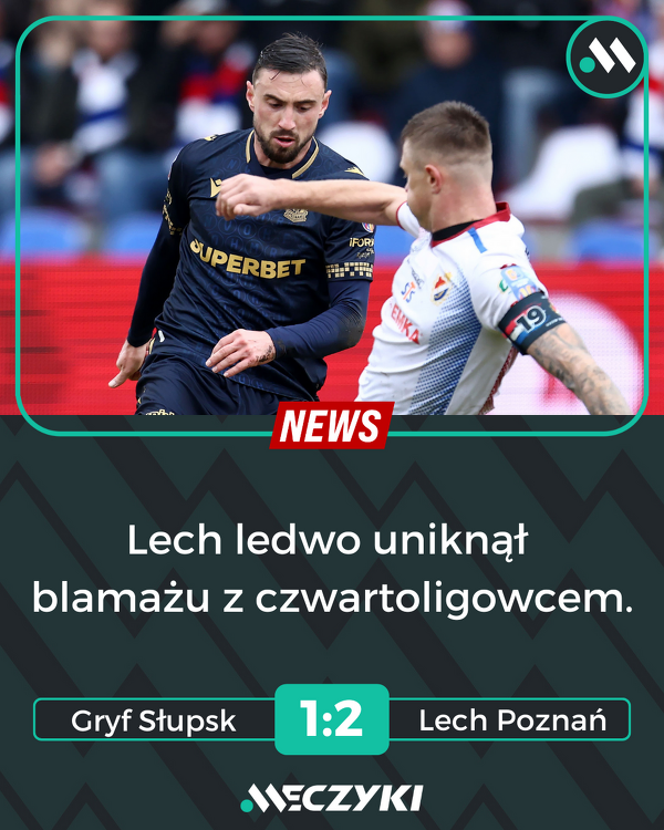 Czwartoligowiec potrafił zaskoczyć mistrza, ale to Lech awansował do 1/8 finału Pucharu Polski