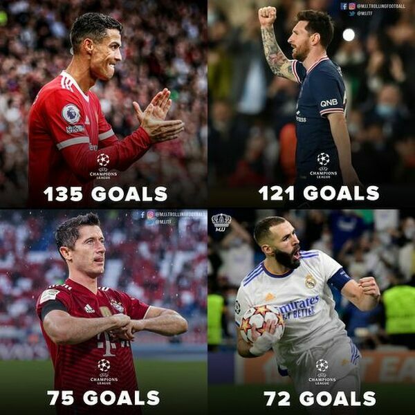 Czwórka najlepszych strzelców w historii Ligi Mistrzów