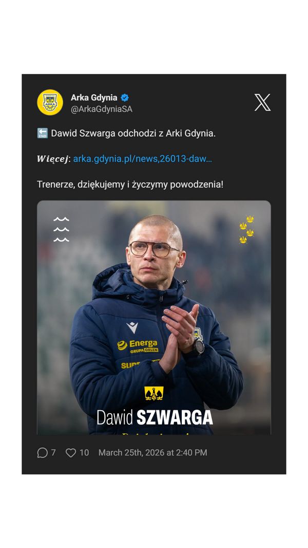 Dawid Szwarga odchodzi z Arki Gdynia