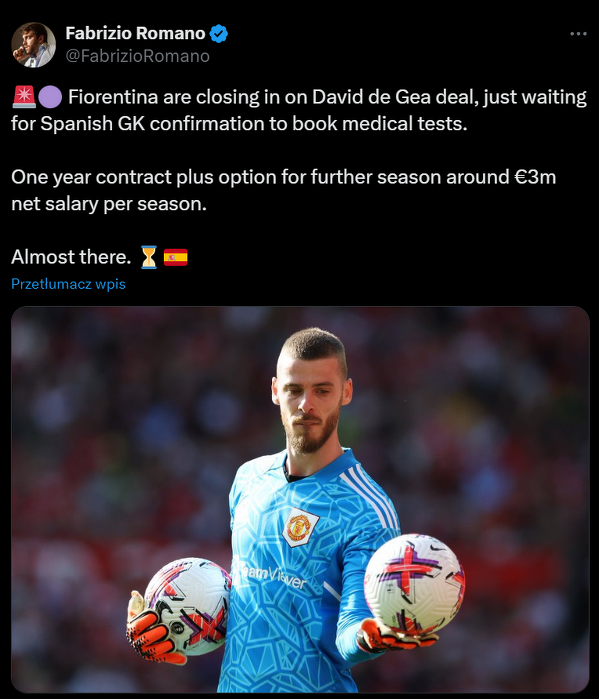 De Gea może trafić do Fiorentiny