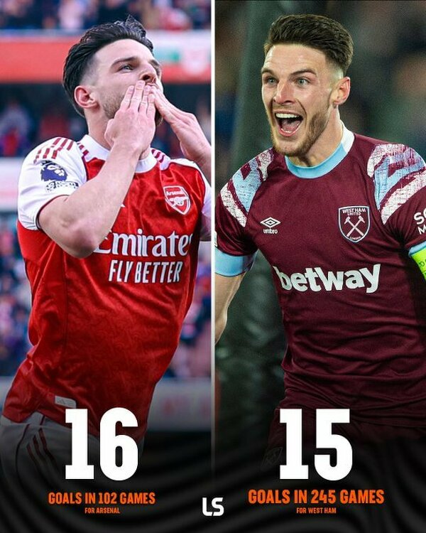 Declan Rice strzelił już więcej goli dla Arsenalu niż podczas swojego okresu gry dla West Hamu