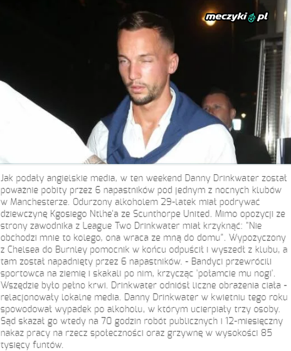 Drinkwater zosłat poważnie pobity w nocnym klubie