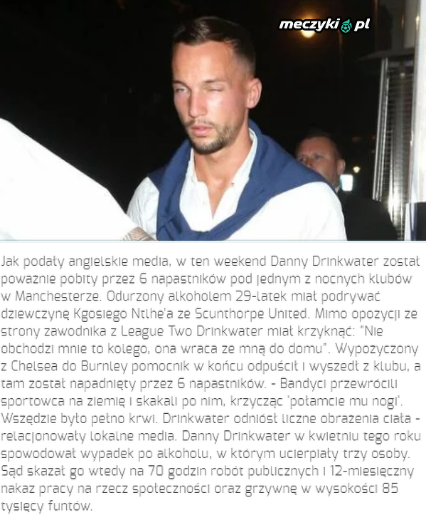 Drinkwater zosłat poważnie pobity w nocnym klubie