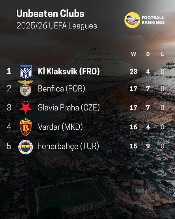 Drużny z najwyższych klas rozgrywkowych w Europie, które nie przegrały jeszcze meczu w tym sezonie ligowym