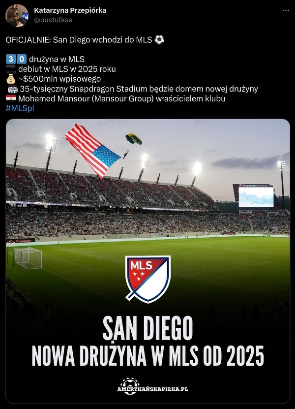 Drużyna z San Diego zostanie 30. zespołem w MLS