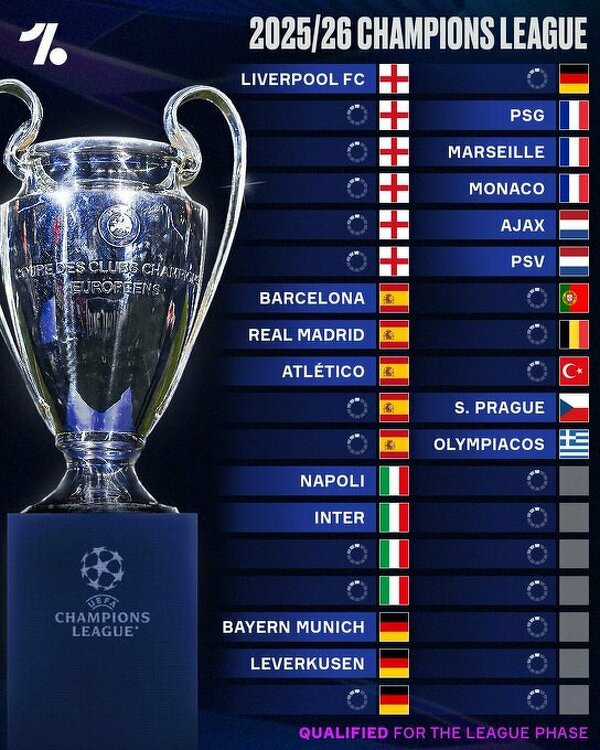 Drużyny, które na ten moment wywalczyły sobie awans do Ligi Mistrzów w kolejnym sezonie
