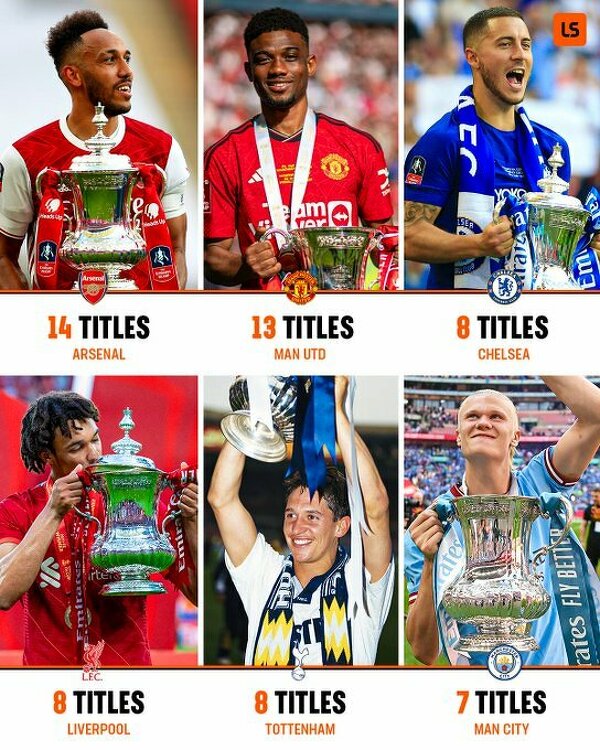 Drużyny, które najwięcej razy wygrały Puchar Anglii