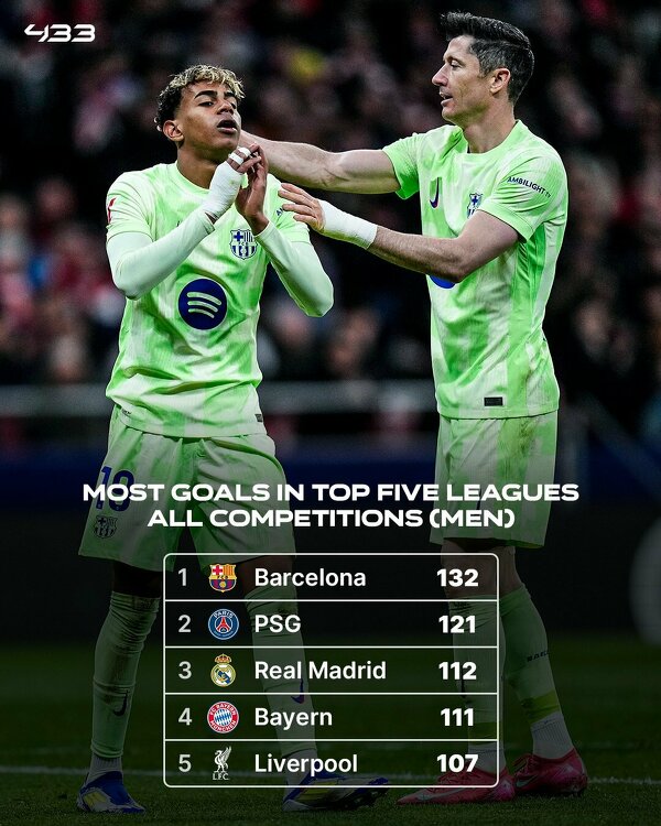 Drużyny, które strzeliły w tym sezonie najwięcej goli