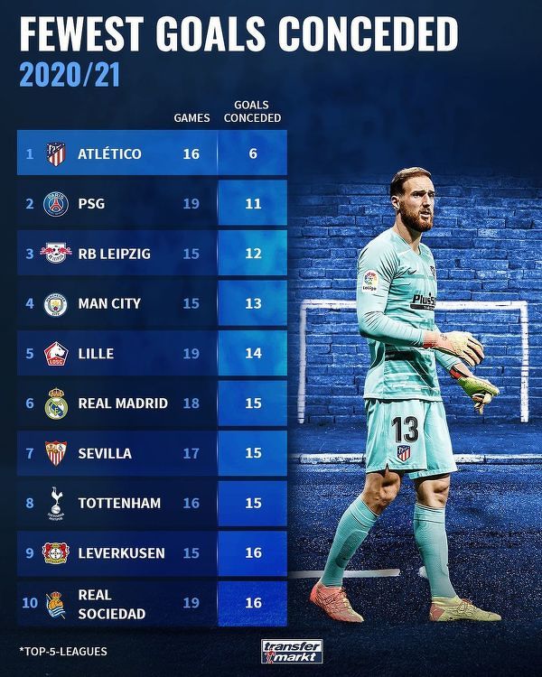 Drużyny z najmniejszą liczbą starconych goli w obecnym sezonie