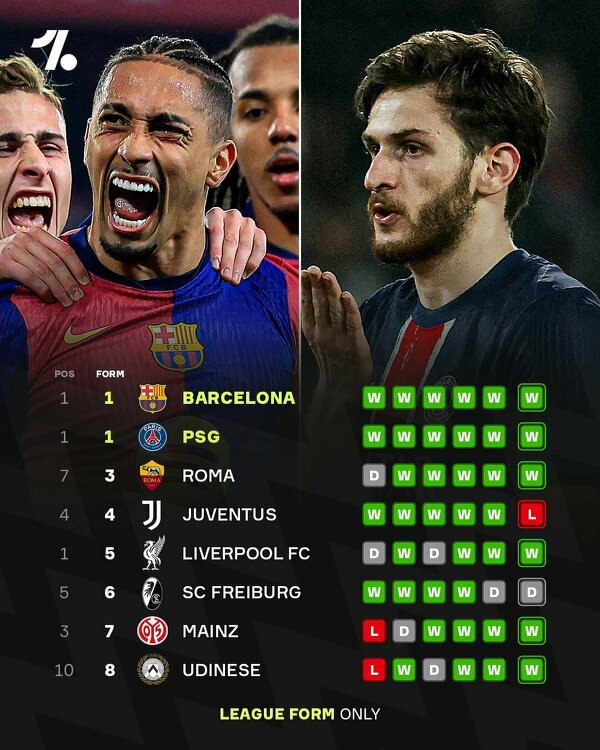 Drużyny z TOP 5 z najlepszą formą w lidze